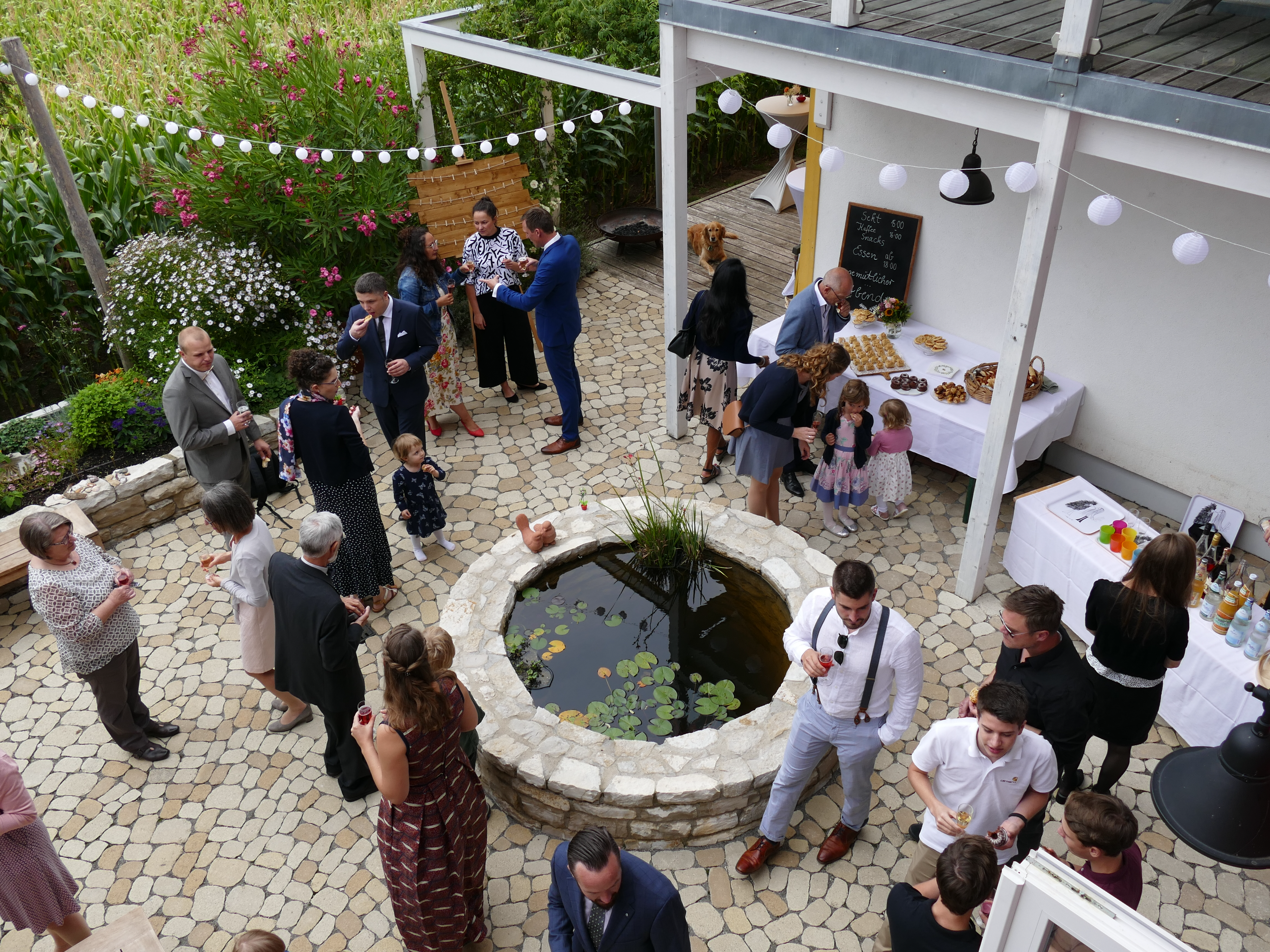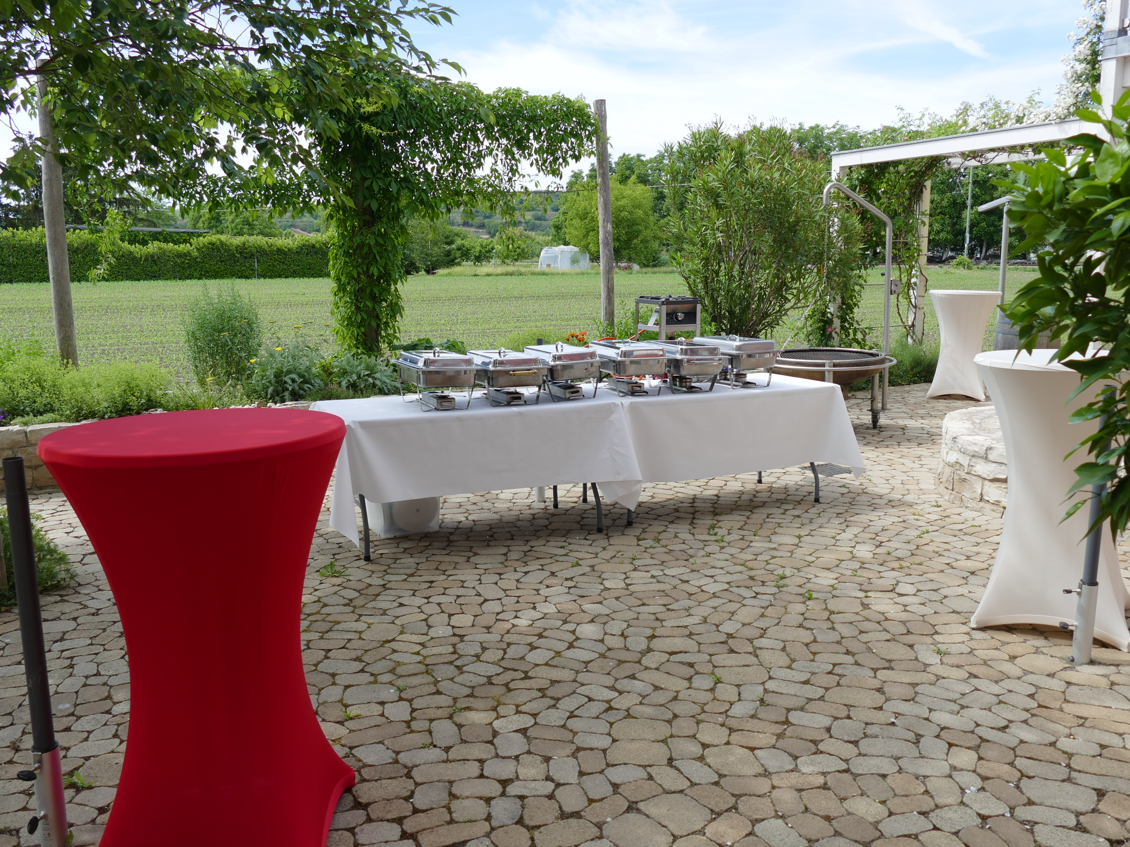 Die Kaiserstuhl Location bei Freiburg bietet einen großzügigen, liebevoll bepflanzten Innenhof mit Brunnen und freiem Blick auf Felder und Reben – perfekt für entspannte Pausen und Networking im Freien. Die angrenzende Sonnenterrasse mit Markise erweitert die Möglichkeiten für Ihre Firmenveranstaltung.